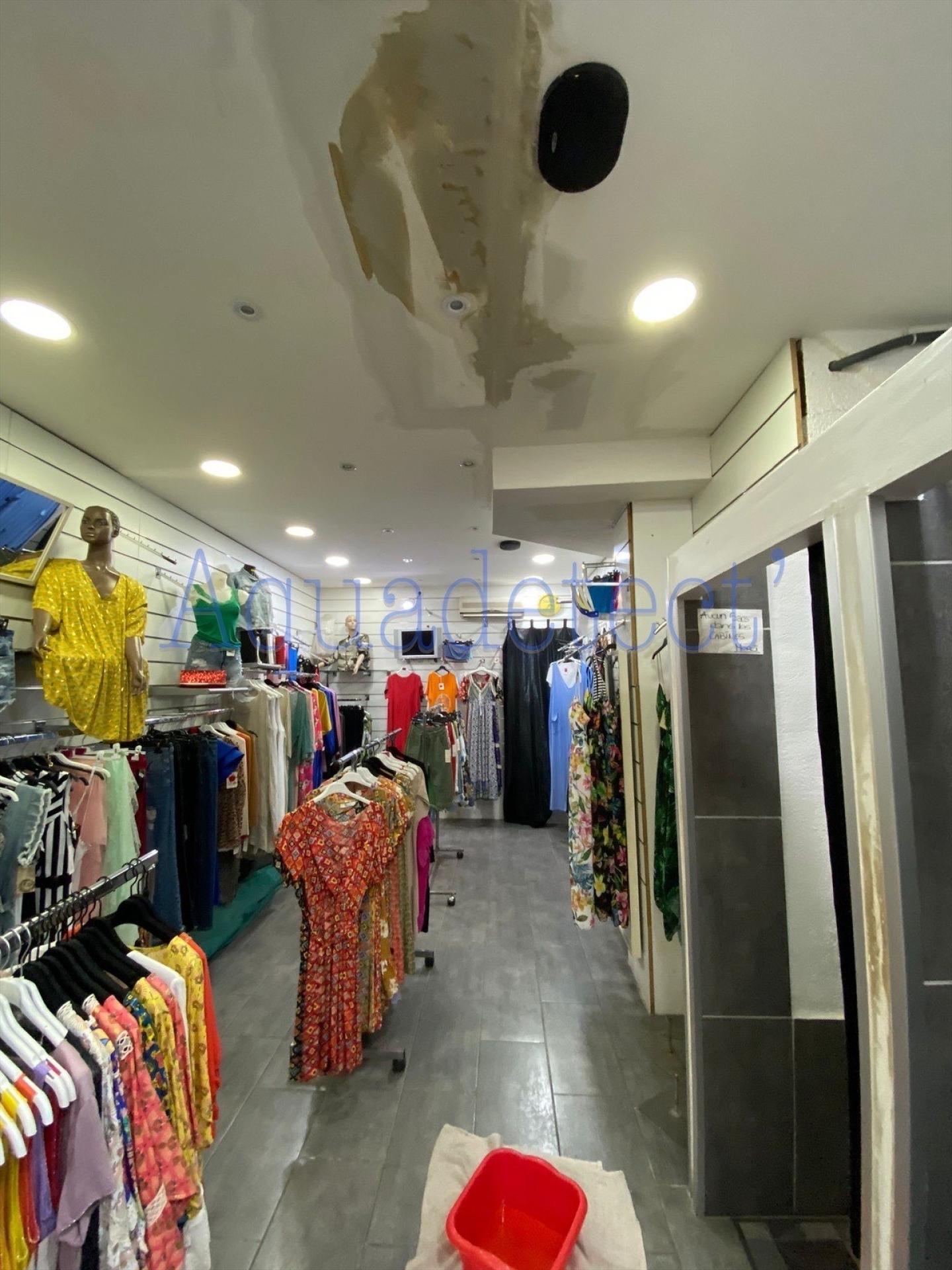 Le magasin subissait un sinistre dégât des eaux (infiltration, gouttes à gouttes) au niveau du plafond.